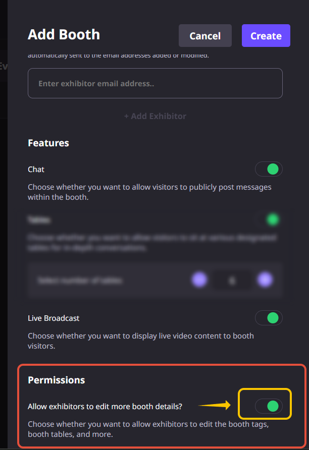 As an event organizer, you can enable or disable a few features according to exhibitor needs.